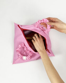 Jej unikatowy kształt sprawia, że jest niezwykle pakowna i praktyczna w użytkowaniu. Dwustronny zamek ułatwia wyjmowanie z niej rzeczy, a dzięki rączkom wygodnie zawiesisz ją w łazience. Idealnie sprawdzi się na prezent – kosmetyczki składamy w uroczą laleczkę i ozdabiamy stemplowaną etykietą.