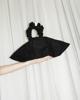 MATERIAŁ: Czarna bawełna powlekana z eleganckim, połyskującym wykończeniem.