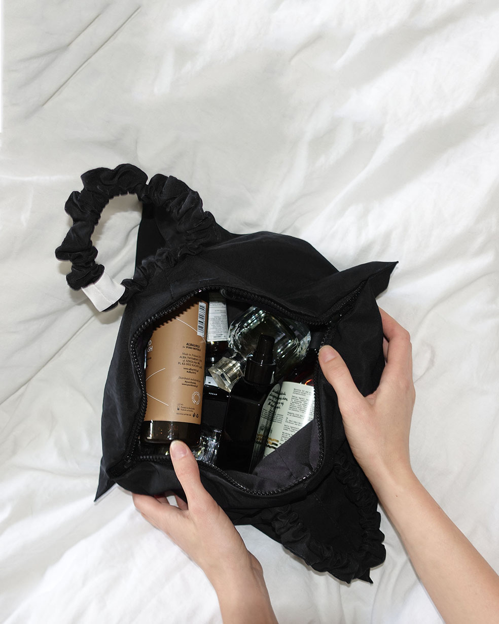 Jej unikatowy kształt sprawia, że jest niezwykle pakowna i praktyczna w użytkowaniu. Dwustronny zamek ułatwia wyjmowanie z niej rzeczy, a dzięki rączkom wygodnie zawiesisz ją w łazience. Idealnie sprawdzi się na prezent – kosmetyczki składamy w uroczą laleczkę i ozdabiamy stemplowaną etykietą.